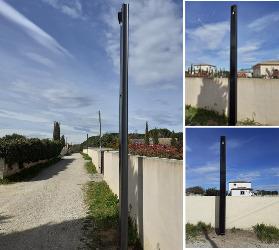 Ello lighting set in top mounting on square pole with side Ello rear light. Installation in Uchaud (30).