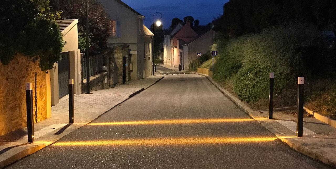 Luminous highlight on pedestrian crossing - Rue Guynemer - Dugny (93) - France