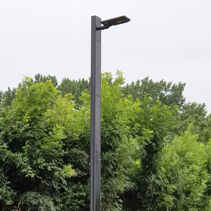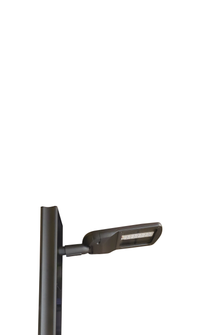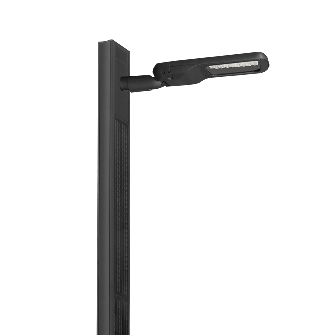 Montage latéral du luminaire sur le mât solaire Straight de la gamme PhotoLight pour distribuer un éclairage directement dirigé vers le sol.